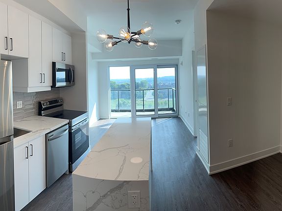Welcome to the Ambrose Condos in West Brantford, where luxury meets convenience in this beautiful 1-bedroom plus den unit. Designed with modern living in mind, this condo features an open-concept layout with a private balcony off the living room, filling the space with natural light through floor to ceiling windows and door.. The sleek kitchen is equipped with stainless steel appliancesfridge, stove, dishwasher, and microwavestone countertops, and a functional island that adds additional counter and storage space. The versatile den makes for an ideal home office or creative space, while the spacious bedroom includes a 3-piece ensuite for added privacy. A second 4-piece bathroom with a tub and shower provides additional comfort for guests or everyday use. The unit also offers in suite laundry As part of the Ambrose community, you'll enjoy access to an array of premium amenities including an elegant lobby with concierge service, a fully equipped exercise room, yoga studio, outdoor running track, and a bike storage and repair room. Entertain in style with a party room, chef's kitchen, lounge, and movie theatre, or relax on the rooftop terrace complete with garden, BBQ station, and lounge seating. Additional features include a pet wash station, secure parcel storage, guest suites, a community garden, and dedicated wellness spaces. Ideally located steps from parks, schools, scenic trails, and shopping, with easy access to Hwy 403, Wilfrid Laurier University, and Brantford VIA Rail Station. A dedicated parking spot is included for your convenience. This is a home you'll be proud to call your own.$1895 plus Hydro and Water - gas is included