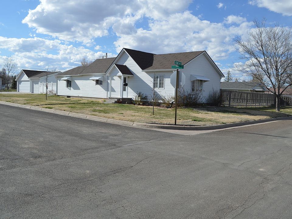 Wonderful home on a corner lot. Living room w/custom wood entertainment center. New Kitchen floor w/custom wood cabinets, breakfast bar & granite countertops. Large master bedroom & his & hers walk in closet. Large sunroom/office. Unfinished basement. Steel 50 yr Decra shingle. High efficient heat pump water heater. 3 car garage & 24x32 finished metal shop w/heat and A/C. New sprinkler system, concrete patio w/pergola, fully fenced back yard. Near school & town swimming pool. PRICE REDUCED!