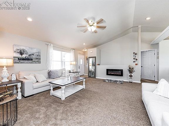Spacious 1 acre property, zoned for horses with great mountain views! Home shows like a model and features stucco exterior, 3-car garage, large living room with vaulted ceilings and modern fireplace, updated kitchen with white cabinets, new appliances, new countertops, new sink, new brushed brass faucet and door hardware, under-cabinet lighting, oversized and new sliding glass door in dining area, 4 spacious bedrooms including large master suite with walk-in closet and 5-piece bathroom, main-level laundry with built-in cabinetry, new paint throughout, an unfinished basement for future expansion, fenced backyard, and plenty of room to park your RV or boat. Great location...fifteen minutes to Pueblo Reservoir and close to amenities. Click on both virtual tour links to see more!