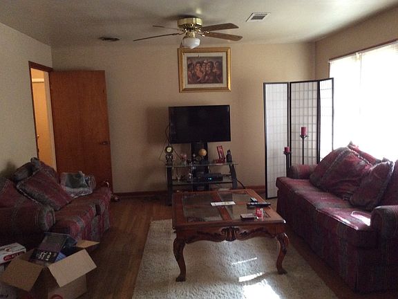 3 bedroom, 1.5 bath brick home with hardwood floors throughout except vinyl in kitchen/dining room, large kitchen/dining area, large living room. Ceiling fans in all rooms. Large fenced in backyard. Great for first time home buyer, retiree, game day house or investment property.