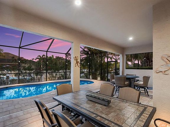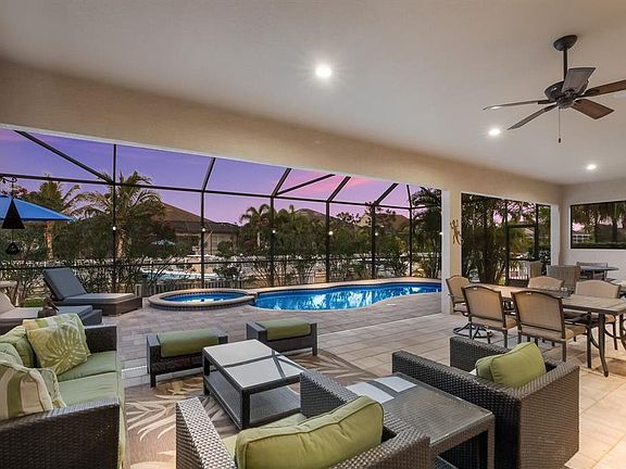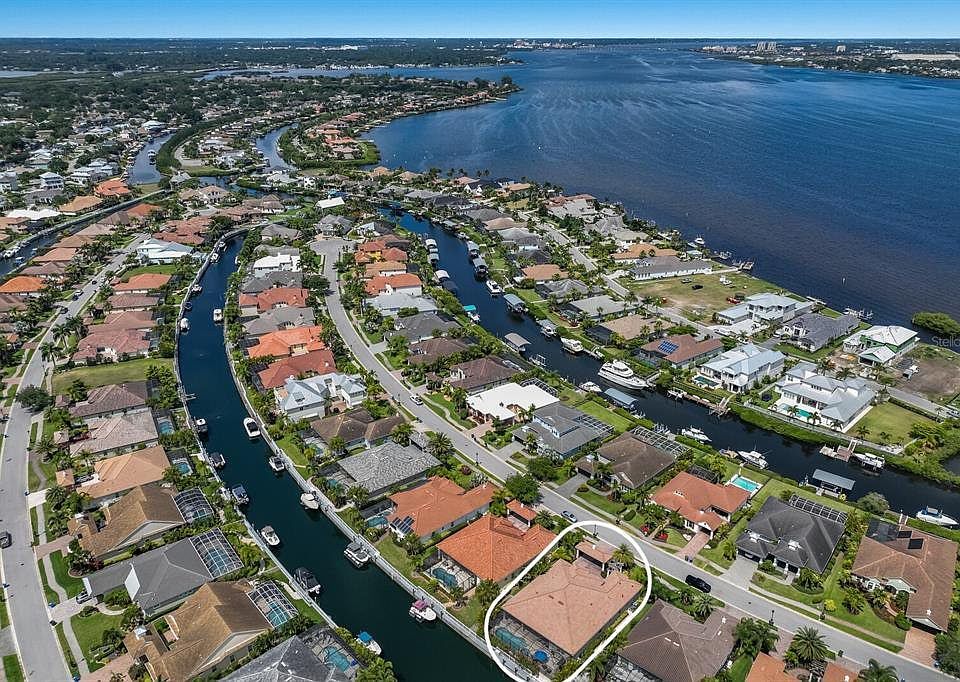 Enjoy a peaceful gated boating community just minutes from world-class beaches and shopping while docking a boat right in your own backyard! Florida living at its best. What makes this spacious home stand out from others is the rare 800+sf covered lanai creating incredible outdoor Florida living. Enjoy the ultimate outdoor entertaining space with 5 seating areas - a full outdoor kitchen w/peninsula seating, a cozy firepit area w/seating, a full dining space, a couch conversation seating area AND a free-standing outdoor fireplace with seating - not found in any other home in Harbour Walk. This ultimate outdoor living home allows entertaining to easily flow right into the open floorplan home through the quadruple sliding glass doors. Step inside the 3085sf home which boasts 3 bedrooms, 3 baths, a large office that can be a 4th bedroom, an extra-large bonus room, tall ceilings, gas appliances, hurricane shutters, pool, spa, paver driveway, paver pool lanai and more. Easily boat to your favorite beach or the Gulf of Mexico & beyond from your own backyard with plenty of fishing, dining, and fuel stops along the way. This rare gated boating community is close to I-75 which can take you to dozens of restaurants, incredible shopping, plenty of golf courses, world-ranked beaches, 3 airports, and more. Don't miss this the opportunity to entertain your family and friends in this fabulous indoor/outdoor Florida-living home.