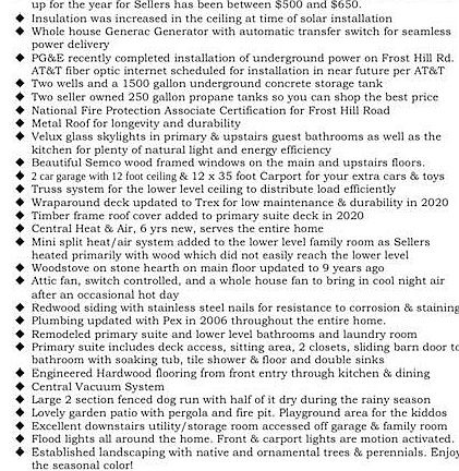 Historic Dutch Flat, where the Sierra foothills meet the mountains. Live or Vacation here! Known for its blend of privacy & close-knit spirit, this unique town offers a slower pace with plenty of connection found with neighbors & at the 1-of-a-kind community pool, beloved 4th of July Parade, and Community Center classes & gatherings. Hiking, skiing & Sierra rivers & lakes are your backyard playground. This beautifully built custom home has redwood siding with stainless nails & metal roofing The multi-level home has been thoughtfully updated over the years. Main floor features the living room, kitchen & dining; upstairs is the primary suite plus 2 guest bedrooms & bath. The lower level offers a family room, 4th bedroom, bath & laundry. All floors lead outside. Enjoy a spacious 5 yr new wraparound Trex deck, timber-framed covered deck off the primary suite, lovely garden-level patio, gazebo, fire pit & dog run. Features: wood-framed windows, Velux glass skylights, 2-car garage, tall double-deep carport, Generac generator, 22-panel owned solar, 6yr new HVAC, 2 wells & 1500-gal storage tank. 2 250-gal propane tanks & more on Attached Doc. Located on popular Frost Hill w/ underground power and easy I-80 access. The perfect blend of comfort, seclusion & convenience.