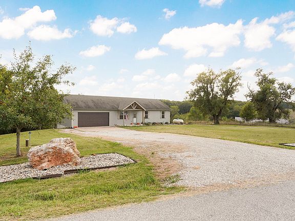 Just down a simple winding road off the main thoroughfare, this gorgeous 4BR, 3BA home is perched atop 8 peaceful, private acres, overlooking rolling hillside and a wet weather creek. Featuring more than 3,500 square feet, with an enormous workshop in the basement that doubles as a storm shelter, and an additional 36x26 shop that has been set up for horse stalls. Boasts three living areas (current owners used one living area as a big formal dining area). The expansive, bright kitchen features a new KitchenAid freestanding stainless steel stove and microwave for the chef in your home, with coordinating dishwasher and large pantry. Small island allows extra counter space for prep. The Master with en suite bath boasts dual vanities, and leads to a fabulous walk in closet with modern, upscale touches. Roomy 2 additional bedrooms on the main level. The basement features the 4th, very large, bedroom to the left, and to the right, a focal point fireplace provides warmth for cozy nights in this winter. Kitchenette allows tons of space to keep snacks for movie night in the home theater room! NEW AC in 2021 too!! This one knocks it out of the park, and won't last long! Schedule your showing today!