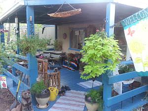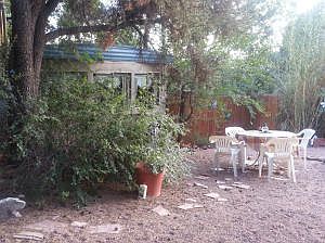 Oversized corner lot with a multitude of trees creating complete privacy. Park-like setting with lots of little pathways, garden areas, sitting areas, etc. A gardner's delight. Cute artistically decorated 1982 Palm Harbor. Walking distance to Thunder Mountain Trailhead. Poured slab for garage. Backyard fenced for pets. Sold as is.