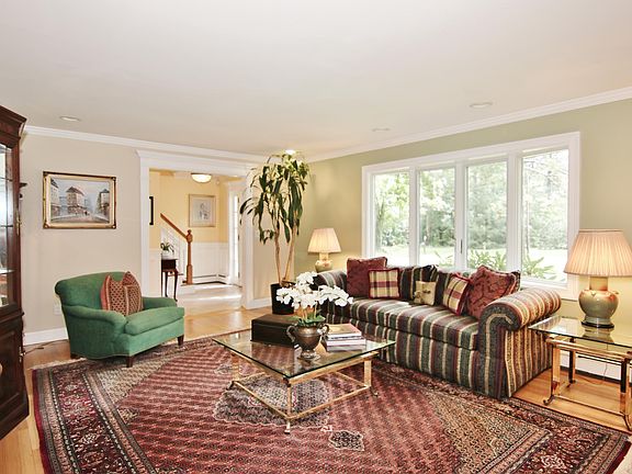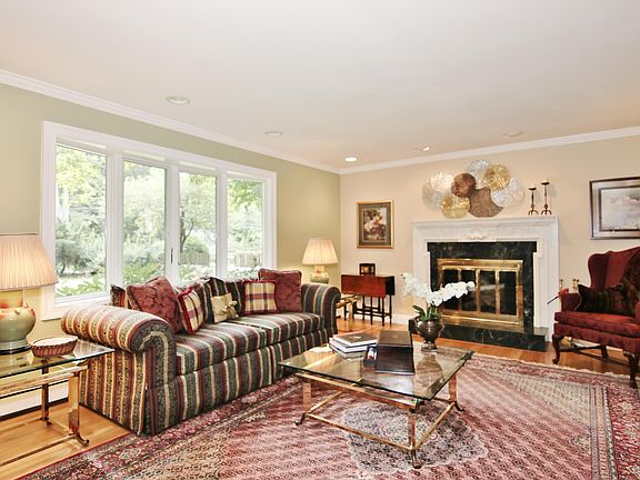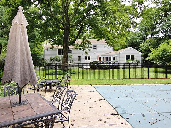 Stylish colonial loads of charm, character, updates and wonderful open floor plan for today. It's on a glorious level, usable, park-like acre refreshing pool, pool house & deck. Beautifully cared for & maintained. Wainscoting, moldings, hardwoods, all Andersen windows & French doors. Gourmet Kitchen has rich cabinetry, granite countertops & upscale applcs incl Subzero, Bosch dishwasher + Gaggenau wall ovens & 5-burner gas cooktop; there's even an under-counter beverage refrig + breakfast bar. The EIK flows into an inviting Family Rm via an open, airy, sun-filled hallway French doors to the deck that connects both rooms. Master suite is privately set unusually lg, sunny BR & pretty bathrm; in fact all the baths have been nicely updated. This one's a beauty