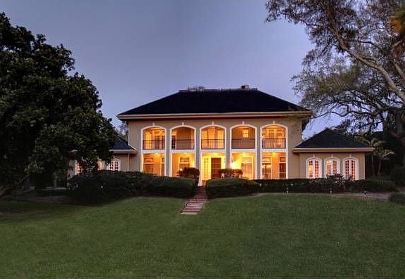 A sweeping view of green lawn and blue Intracoastal waters from the bluff location of this 10,000 square foot French Provencal 7 bedroom, 7 full bath, 3 half bath estate home situated on 3.9 acres is beyond magnificent. A two story guest house features three bedrooms and two baths. The waterside “cabana” boasts a bar, kitchen and exercise room plus a poolside bathhouse.