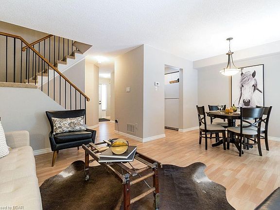 Move in and start enjoying this one right away. This modern and fresh condo-town features fresh paint, new door hardware throughout, and peace of mind with a NEW furnace (2020)! There is also a bonus finished rec space on the lower level with a 2nd full bath. Rec space also has a rough-in for a wet-bar ready to go! One of the key features of this property is the nature right in your back yard. Great hiking trails are available just steps from this unit, and woods in the back of this lot provides amazing privacy! Location couldn't be much better either, as you have easy access out to the 400, and a quick skip over to Upper Canada Mall along with entertainment and dining. Schools and parks are all close-by too!