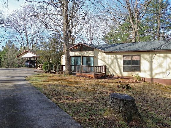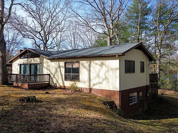 Large single-level living home with super-convenient access to downtown Franklin NC! This is an ideal home for a big family, w/3 bedrooms & 2 baths plus a den on the main level AND a bonus bedroom/family room w/ another bath in the basement. You'll LOVE the huge kitchen w/ massive open dining area, which leads to the rear deck. The living room has a vaulted ceiling & sliding door access to another deck. A new HVAC in 2023, and a cozy brick fireplace w/ wood-burning insert. New roof in 2023. You have a tiled shower in the en-suite master bath, & the second bathroom on the main level is just as large, featuring a jetted tub. Nice large laundry room and updated flooring. The basement has a third bathroom. Easy paved-to-the-door access to your detached 2-car carport, which offers a storage room for your garden tools and seasonal items. The level lawn and corner lot make this a wonderful property for children and pets. The square footage this house offers gives you the room and ability to make this home something very special.