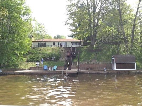 Very nice 2 bedroom 1 1/2 bath home on a double lot on All Sports Smallwood Lake with a Fantastic Sunset view of the Lake! Living room has a Brick Wall Fireplace, Master Bedroom with 1/2 bath, Walk through Full bath off the Hall way & other Bedroom, Large Garage with work bench, vice, grinder, vice, garage stereo & extra refrigerator , concrete drive, sidewalks , & 2 sheds, one with RV Plug & 1 at the waters edge on the waterfront walkway/decking with electric at the water, seawall. enjoy the Sandy Bottom swimming, fire pit, horse shoe pits & pic nic table. Hang your sheets & towels on the cloths line for that fresh up North air fragrance. Cable TV available & Natural Gas at the road. Just steps away from 35,000 Acres of State Land with trails & gravel roads through out. Agents, see Agent Comments.