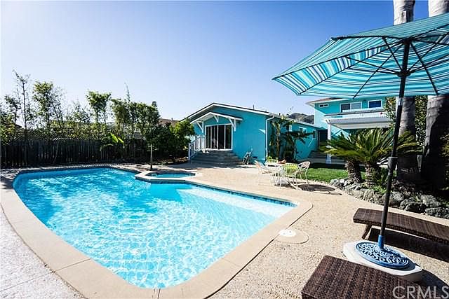 Your own personal oasis located in a friendly, quiet downtown SLO neighborhood. Easy walk to parks and hiking trails. 3 bedroom, 2 bath, single level home with a detached unit and 3rd full bath over an XL 2 car garage. The unit can be an office, guest room, gym, or converted to a rental unit for added income $1500month, $200night. The layout is ideal for a family working and/or schooling from home. Well-maintained with excellent views of surrounding hills. The kitchen features custom cabinetry, quartz counters, new stainless steel appliances, RO unit, and opens to the dining area and living room featuring a wood-burning fireplace. Master suite has a spacious light-filled bath with double vanity, double-headed walk-in shower, private toilet room with new bidet, skylights and plenty of drawers and cabinets. Huge private backyard is a rare find downtown with mature tropical landscaping, patio space for lounging, dining, grilling, a tiki bar, lawns for games, kids, dogs. Awesome in-ground low-maintenance pool and spa. If youre working/schooling from home, enjoy your lunch break poolside, and take a swim before returning to work. Energy-efficient with abundant natural light and airflow throughout. 20 rooftop PV solar panels PGE bill avg $31/mo. Pool/spa has solar water heating, top of the line gas heater, solar blanket cover. Tankless water heater for limitless hot showers in all 3 baths. Soft water system. Oversized garage fits 2 cars, a workbench, cabinetry and laundry area.