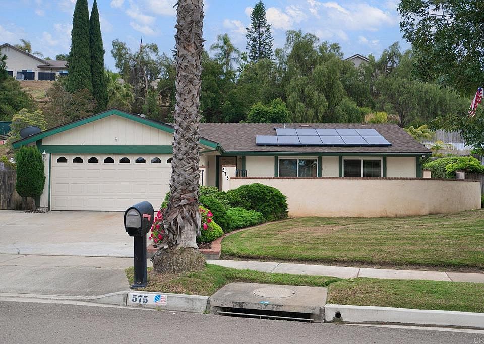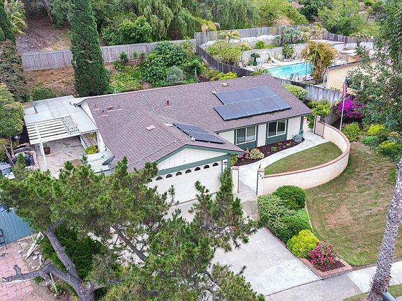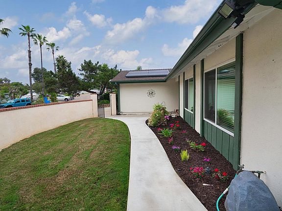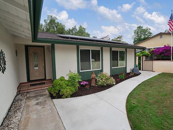 Welcome to a charming home located on a quiet cul de sac in the heart of Vista. This delightful property features three bedrooms and two bathrooms, offering a total of 1,410 square feet. Nestled on a generous 10,000 square foot lot, with a pool and covered outside patio. As you enter, you'll be greeted by an inviting family room that seamlessly transitions into the dining area and kitchen. The open floor plan creates a warm and welcoming atmosphere. The kitchen features modern appliances, elegant cabinetry, and stylish granite countertops. Throughout the home, you'll find dual pane windows, ensuring energy efficiency and a quiet indoor environment. The casing around the windows and doors adds a touch of elegance to the interior. One of the standout features of this property is the backyard oasis it offers. The pool, which was refinished just six years ago, is a sparkling centerpiece that invites you to take a refreshing dip on hot summer days. Surrounding the pool, you'll find a well-maintained patio area, perfect for lounging or hosting poolside gatherings. The soothing sound of the outdoor fountains adds a touch of tranquility to the ambiance, creating a serene and relaxing environment. For added security and peace of mind, the property features outdoor security lighting, illuminating the surroundings during the evening hours. Additionally, both bathrooms have been upgraded. Conveniently situated on a quiet cul de sac, this home offers a peaceful and private setting. However, you're just minutes away from the vibrant downtown Vista area, where you'll find an array of dining options, shops, schools, and entertainment venues. Additionally, the property features a two-year-old roof, leased solar panels, and a one-year-old furnace.