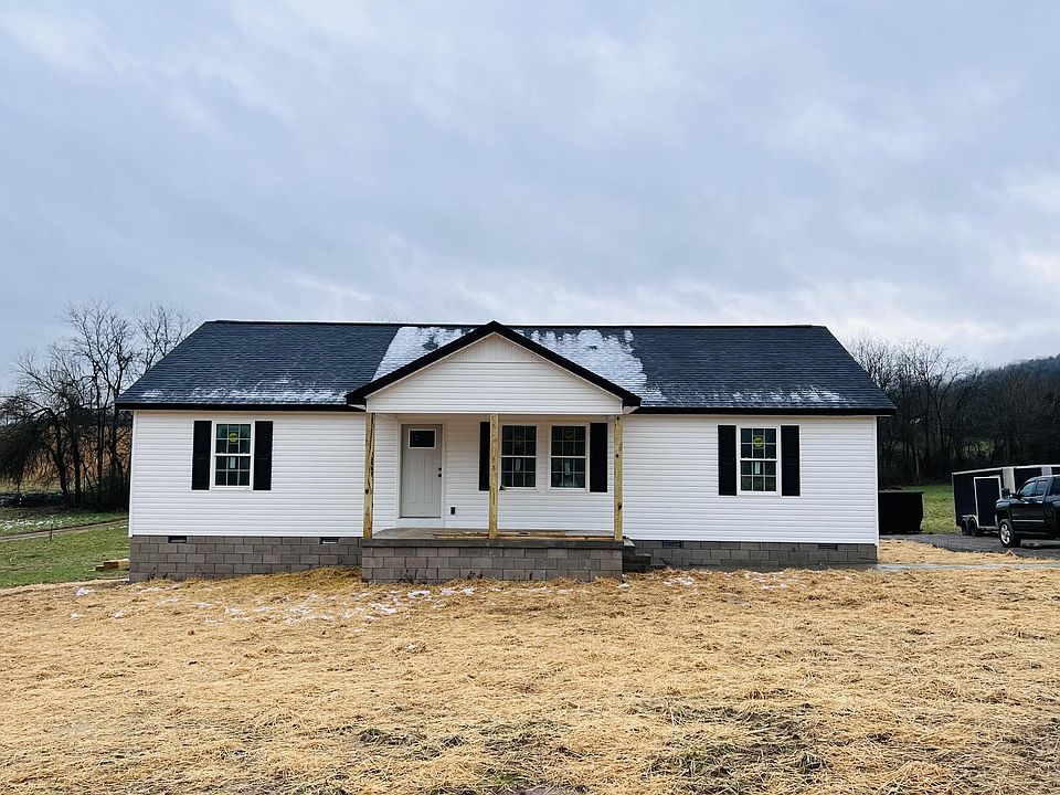 Country living with beautiful views and quick lake access can be yours in this charming 3 Bed 2 bath open floor plan. Prefinished wood floors, shaker cabinetry, Kitchen Island , granite countertops, SS appliances and tile floors in bathrooms and utility are features to be appreciated. A Covered back porch adds enjoyment when sitting in warm spring days or cool fall evenings. Completion is expected mid February so dont wait or you will miss out on this opportunity!