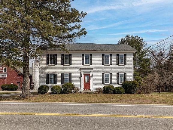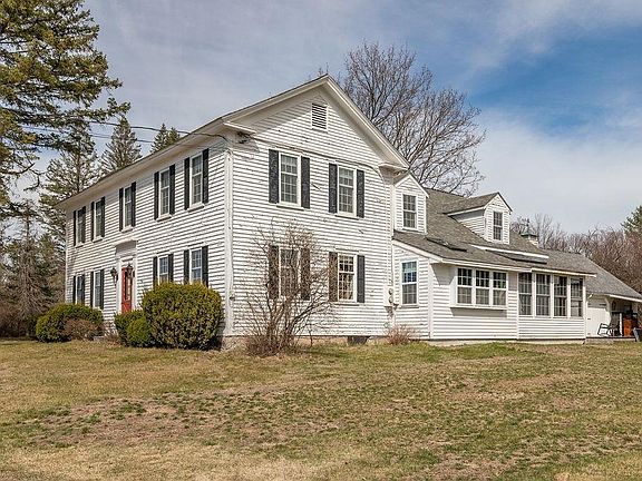 This beautiful colonial farmhouse on 3.4 acres with a large red barn is a quintessential New England property. The home has 3 bedrooms and 2.5 bathrooms with additional room for expansion. The primary bedroom and ensuite is on the first floor with 2 additional bedrooms on the second floor. The den on the first floor has a large closet and could be a 4th bedroom. The large living room has pine paneling and a large fireplace. The kitchen is large with the dining area adjacent. A beautiful sunroom completes the first floor. There is a 3 screened porch between the garage and house. The large 3 story barn has a large heated workshop space as well as tons of storage. There is a small storage shed next to the barn. This property is located near I-89 providing easy access for commuters. The property is zoned for Industrial use making it an ideal location for a business. This is a must-see property; the potential is great for either a private home or a commercial business. Showings begin at the Open House on 4/15 from 11-1 with a second Open House on 4/16 from 2-4.