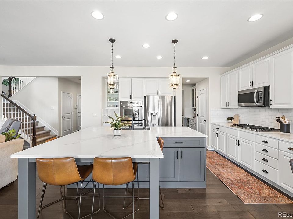 Nestled in the prestigious Backcountry neighborhood, this remarkable home offers an unparalleled blend of elegance and functionality. The main floor boasts a sophisticated office with double French doors and a formal dining room seamlessly connected to the kitchen through a butler's pantry, complete with a wine cooler. The kitchen is a chef's dream, featuring quartz counters, an oversized island with seating for four, and a cozy kitchen nook for casual dining. Flowing effortlessly into the living room adorned with a gas fireplace, the kitchen also extends outdoors to the custom fireplace and expansive yard, perfect for entertaining. Upstairs, discover the primary bedroom retreat alongside three secondary bedrooms, one currently repurposed as a home gym. The primary bedroom impresses with a sliding barn door, walk-in closet, and a beautifully updated ensuite bathroom featuring in-floor heating, an oversized shower, built-in makeup vanity, and dual sinks. The basement offers additional living space with a bedroom with a large walk-in closet and a generous entertainment area, ideal for leisure activities like playing pool or watching TV. This home embodies luxurious living at its finest, offering comfort, style, and convenience in a coveted neighborhood setting.