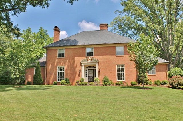 Located in the heart of the Halifax Historic District, this Georgian style two-story brick residence is surrounded by 19th & early 20th Century stately homes w/spacious lawns. On the second floor is a master suite w/wood-burning fireplace, dressing room, & full bath and 2 additional bedrooms w/second full bath. On the main floor, separated from the main living areas, is a second master suite w/full bath. All 4 bedrooms have walk-in closets. Also on the main floor is a formal living room w/wood-burning fireplace, formal dining room, entry foyer w/beautiful curved stairway, a wood-paneled family room w/custom built-in book shelves, a fireplace (w/gas logs), and a wet bar. Powder room is adjacent to family room. A large eat-in kitchen has custom made cherry cabinets, granite counter tops, cherry hardwood flooring, Sub-Zero refrigerator, gourmet Thermador gas cooktop & Five-Star hood, Bosch s/s dishwasher, Kitchenaid built-in s/s oven/microwave, warming drawer, trash compactor, garbage disposal and computer work station. English-style conservatory was added in 2011. The home is situated on 5.88 acres & includes a one year home warranty. Call today to see this inviting Southern home.