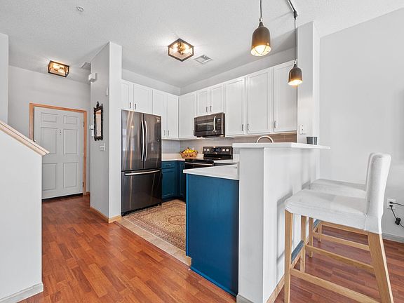 The perfect balance of city living with green space at your fingertips, this highly coveted North Loop walk-up unit is waiting for you to call home! Your private gated balcony faces the green courtyard and is large enough to grill out and entertain during the warm months. Inside you are welcomed with an inviting living room with plenty of natural light and space for an informal dining area. The kitchen has been thoughtfully updated with quartz countertops, backsplash, painted cabinets, a new sink, and ss appliances. A 1/2 bath & a generous walk-in coat closet complete this level. Upstairs you will find a large lofted area perfect for an office space or fitness area. The owner’s suite features windows overlooking the surrounding trees, a walk-in closet, and a spacious full bath with plenty of counter space. In-unit laundry w/ ample closet space for storage conveniently located on this level. Walkable to the river, coffee shops, amazing restaurants, grocery, & so much more!