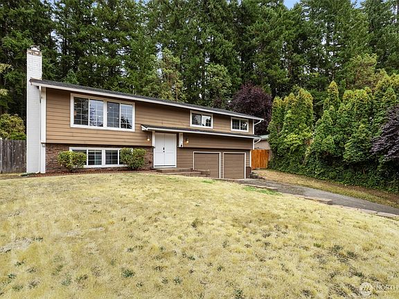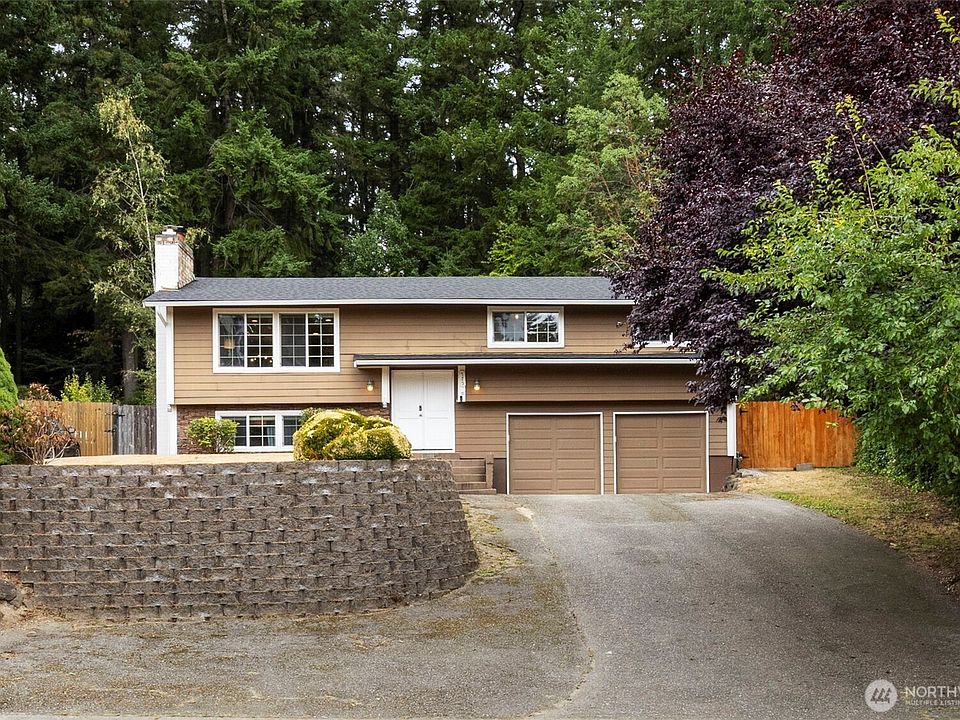 Well maintained updated home w/great street appeal, sits on second largest lot in the popular Parkwood East neighborhood w/ walking trails to Cottonwood Elementary. Step up to an open concept living area w/ vinyl plank flooring & big windows for great light. Slider off Dining room to tiled back deck with wooded views of private fenced backyard. Island Kitchen with breakfast bar, quartz counters, stainless appliances & subway tile backsplash. Other design features include faux shiplap in entry & updated fans/lighting, closet barn doors & a linear electric fireplace. Primary suite is cozy & the bathroom has been updated. On the lower level enjoy the Family/Rec room along w/laundry & half bath. Great location for PSNS commuters. See it today.