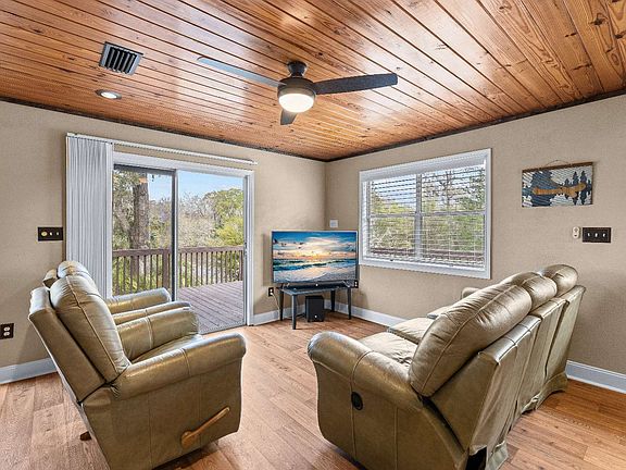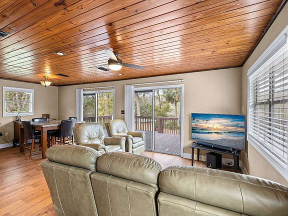 Welcome to your riverside paradise! Set on the serene banks of the Suwannee River, this charming home offers the perfect blend of comfort, convenience, and breathtaking natural beauty. Situated on a double lot, this property boasts ample space and privacy, making it ideal for relaxation and recreation. Step inside to discover a meticulously remodeled interior featuring new flooring, updated kitchen and bathrooms, and modern finishes throughout. The open layout is perfect for entertaining, with two sets of sliding glass doors inviting you to step out onto the expansive porch, where panoramic views of the river await. Outside, a private dock extends towards the water's edge, providing easy access for fishing, boating, or simply soaking in the tranquil surroundings. With three RV hookups available, hosting guests is a breeze. Located just minutes from the charming town of Branford, you'll enjoy quick access to a variety of local amenities, including restaurants, shops, and recreational facilities. Plus, with the Branford Boat Ramp approximately .24 miles away, launching your watercraft for a day of exploration couldn't be easier. Whether you're seeking a weekend retreat or a year-round sanctuary, this riverside home offers the perfect blend of comfort, convenience, and natural beauty. Don't miss your chance to make this slice of paradise your own!