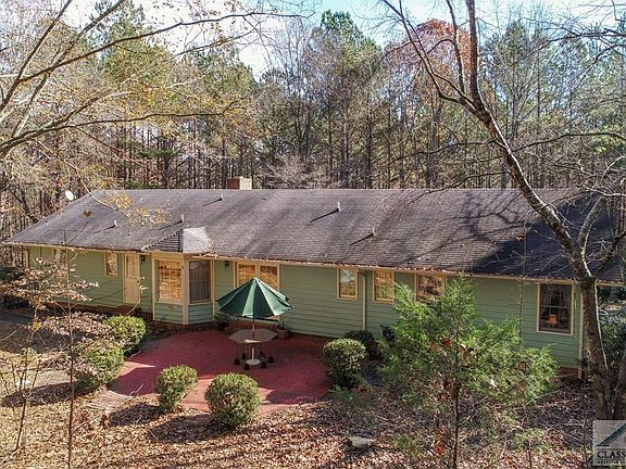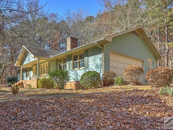 This is such a unique private setting for this sweet blue house in the woods! So close to Athens with a long winding driveway and a covered front porch, this hilltop home boasts a masonry fireplace, comfy carpet, huge living room, a great big dining room with French doors to back patio, plus breakfast bay, great laundry area with a door to the backyard ! All three bedrooms are large with hall bath and master bath plus there is an office/nursery/craft room off the kitchen with a half bath there! New heating and air. Plenty of perfect places to garden or hike with views to creek next door. This home is easy to show so call today