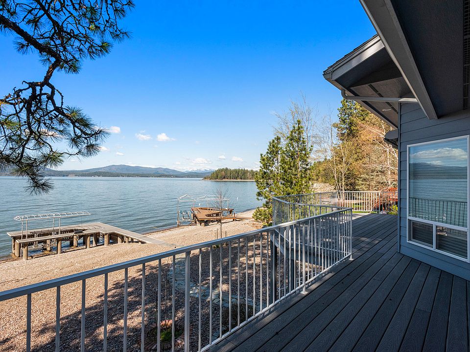 Beautiful home first time on the market! 3798 SF home on half acre lot with 100' frontage on Gorgeous Pend O'Reille Lake. Built in 2001, this custom home has 5 bedrooms (2 masters), 3.5 bathrooms, formal living room, large family room, sun room, storage galore in unfinished basement as well as an attached storage room to store fishing gear, skis, bbq equipment, three car garage, dock with boat lift. It is located in the prestigious Kulleyspell Estates in Hope, Idaho. The home is adjacent to the community beach and boat ramp.Pend O'Reille (pronounced ''pon der ray) is the largest lake in Idaho with surface area of 148 sq. miles, 43 miles long, 1,150 feet deep in some areas. Great fishing, boating and water sports of all kinds.