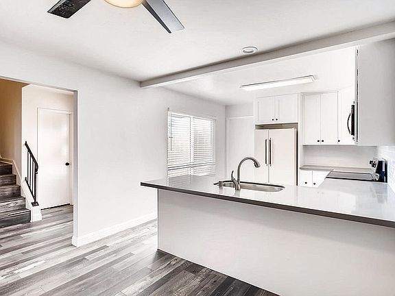 COMPELETLY REMODELED EARLY 2019 WITH NEW KITCHEN, NEW APPLIANCES, NEW WINDOWS & WINDOW COVERING, NEW SLIDING GLASS DOOR, NEW BATHROOMS & LIGHTS, NEW VINYL FLOORING THROUGHOUT AND ALL NEW INTERIOR PAINTS. CORNER UNIT WITH ATTACHED 2 CAR GARAGE. MASTER BEDROOM WITH BALCONY. 2ND BEDROOM WITH IT'S OWN BATHROOM. COZY BACK PATIO TO ENJOY BBQ. FIREPLACE IN COMBO FAMILY/LIVING ROOM. NEAR NEIGHBORHOOD SHOPPING CENTER AND SCHOOLS. A MUST SEE!