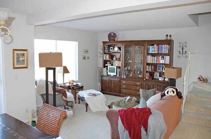Tri-level condo is tucked away in a peaceful complex with only 48 units. Unit 45 is located away from the street and provides a breathtaking panoramic mountain view! Features two balconies each with views, an attached two car garage with washer and dryer, refrigerator and a large bonus/game room on the bottom level. Energy efficient double paned windows throughout. New paint and epoxy garage floor. 3 bedrooms, 2 1/2 baths, almost 1900 square feet. Custom tiled entry, tiled kitchen, carpet throughout. Brokered And Advertised By: Arroyo Realty Listing Agent: Richard F. Arroyo RMS