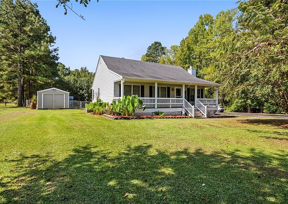 This charming 3 BR 2 bath STICK BUILT home on 1 acre is a wonderful starter or a down-sizing home!! Many features including family room with F/P, rear screened porch, deck, outbuildings, fenced back yard, encapsulated crawl space and extraordinarily low utilities! Located just over NC line and only 15 minutes from the Suffolk Rt 58 Bypass with schools and shopping, this property is a must see in this price range!!