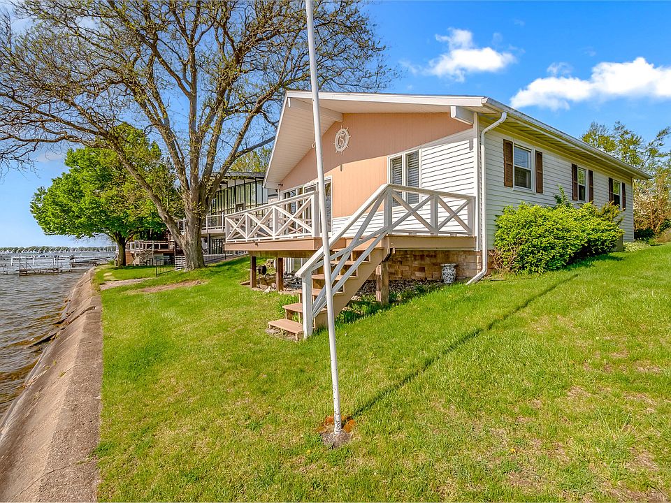 *Coldwater Lake* Breathtaking Views from this Lakefront Retreat! One of the best spots on the lake with its sandy bottom beach area and private drive. This home offers 2 spacious bedrooms and 2 full bathrooms. Open Eat in kitchen and large dining space to accommodate plenty of visitors. Enjoy your morning coffee watching the sunrise on the large deck, or on the screened in porch. The finished basement can serve as extra sleeping quarters, rec room, or simply more storage space. Don't forget about the back lot that has a large 2 car garage. New roof in 2022. This home is ready for you to enjoy this summer! Call today.