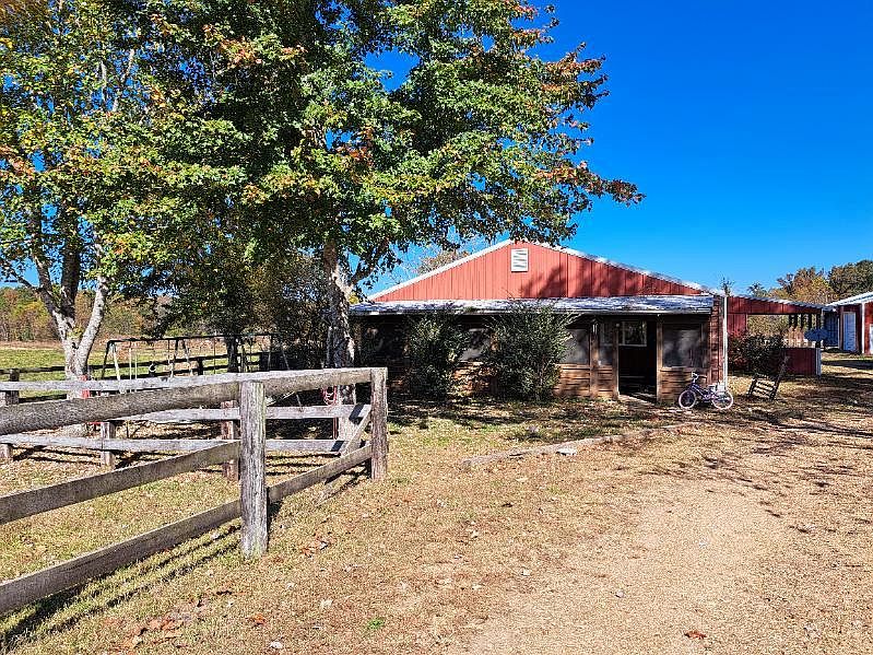 2 BR/1 BA Shop home situated on 25 acres with 24x44 detached shop building, barn with tack room and stalls, pavilion, stock fencing