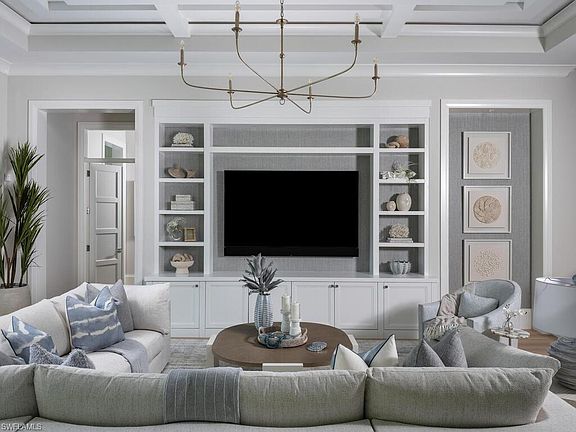 575 Pine Grove Lane is a rare opportunity to purchase a brand-new, completely finished and furnished home built by Borelli Construction of Naples, Park Shore's premier luxury builder. Design and furnishings by R & Co. Designs. This move-in ready home is stunning from every angle. The expansive great room greets you with pool & spa views. The functional kitchen & wet bar feature double islands, a Wolf range top, double ovens, SubZero refrigerator, wine fridge, beverage fridge, Cove dishwasher and galley sink. The working pantry includes a microwave, second dishwasher and refrigerator. High end finishes throughout include white oak wood flooring, marble tile, European style wood cabinetry, 12" baseboards, electric shades, linear AC vents hidden in intricate ceiling details, Crestron home and lighting automation, built-in speakers, custom closet systems, and many custom designer details. Enjoy sunset views from balcony. The home is built to last with concrete block exterior, metal roof trusses, spray foam insulation, Andersen windows, Euro-Wall sliders and moisture-resistant dry wall. A 1,000 gallon underground propane tank fuels many appliances and a whole-house Kohler generator.