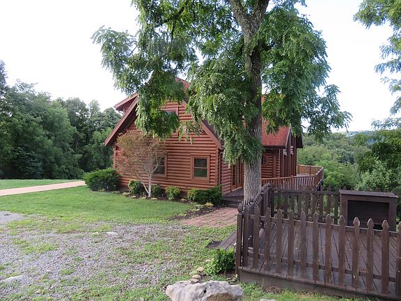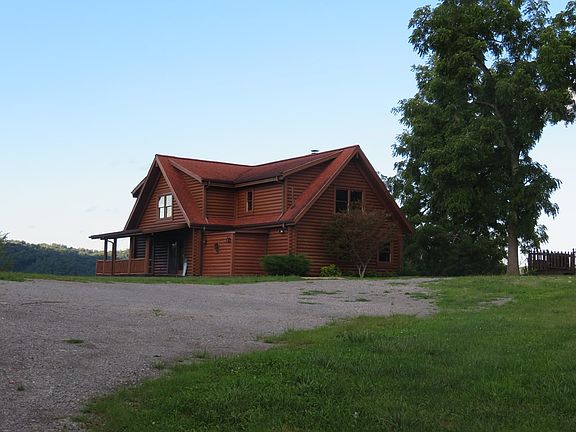 This log home is privately located on a 48.5 ac boundary within the town limits of Richlands. The home features an open great room w/vaulted wood ceilings & walls, custom design metal chandelier, stone fireplace, access to the wrap around deck from two different sets of French doors and a fantastic mountain. The kitchen has an indoor grill, double ovens, custom cabinets, ceramic counter tops, stainless appliance, & a kitchen bar that divides the kitchen, dining & living areas. One bedroom on the main level w/large bath, a laundry area and a half bath. The primary bedroom is on the upper level w/large bath and an dressing area, jet tub & oversized shower. Nice loft area overlooking the great room. The lower level features a large den w/plenty of room for a future 3rd bedroom, or office/craft room with sliding barn doors, bath w/shower, and French doors leading to a lower level patio. Property has a geothermal heating system, hardwood and ceramic flooring.
