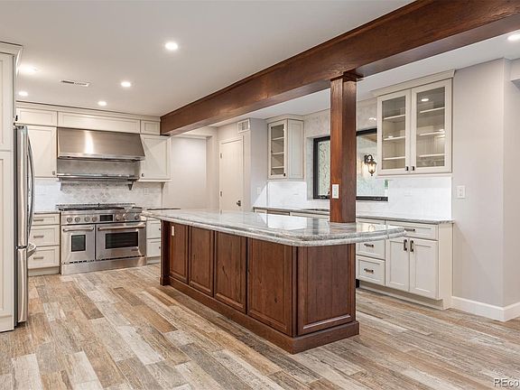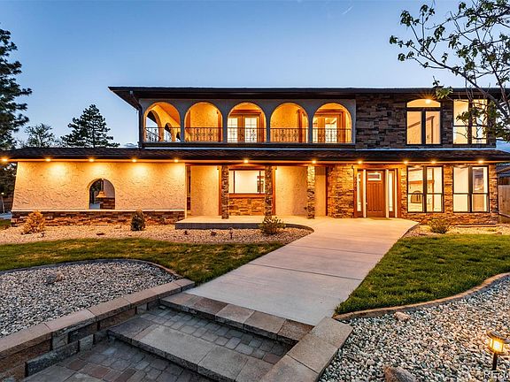 WOW! This extraordinary home sits atop a hill on over a half-acre surrounded by open space with spectacular sweeping city and mountain views! Brilliantly reimagined by the current owners, the residence was rebuilt in 2019, and expanded to create a one of a kind custom estate with grand entertaining spaces inside and out. EVERYTHING is brand new including Anderson windows, custom wood beams and trim, beautiful wood-look tile flooring, and 3 stone fireplaces. Adding to the awesome factor, the home was designed with 4 fabulous outdoor living spaces including an incredible rooftop party deck with forever views of downtown Denver and the entire front range including Pikes Peak. Every detail has been considered in the gorgeous chef's kitchen, with custom wood cabinetry, large center island, slab granite countertops, and all new stainless appliances including a Jenn-Air 6 burner gas cooktop and grill range. Designed for his and her luxury, the master suite features a vaulted wood beam ceiling, stone fireplace, and walk-in closet with custom built-ins. The 5-piece master bath impresses with heated tile flooring, frameless shower with custom tile, premium Delta fixtures, and a teakwood surrounded Whirlpool tub. The finished walk-out lower level is an extension of your living space with a media room pre-wired for projector as well as a marble wet bar and stone fireplace. There is also a remodeled bath and a large bedroom/2nd master with a walk-in closet and separate walkout access. This fabulous home is perfectly located just 15 minutes from downtown and 15 minutes to the mountains. Close walking distance to the newly renovated Glennon heights Pool and Glennon Heights Elementary School. Storage for oversized toys such as RV's, boats & recreational vehicles. The backyard is customizable allowing for whatever your heart desires. Build your dream garage ...1600 sq ft. already approved! Sellers are offering 20K allotment to add your own personal touches!