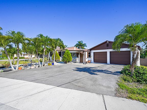 Well maintained property, Metal roof installed 2005 flat roof replaced 2021. Large 2 car garage, corner lot, utility shed in the backyard, Hurricane shutters for most windows