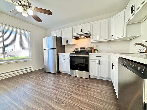 Private entryPatio spaceStainless-steel appliancesLvt flooringWhite cabinets