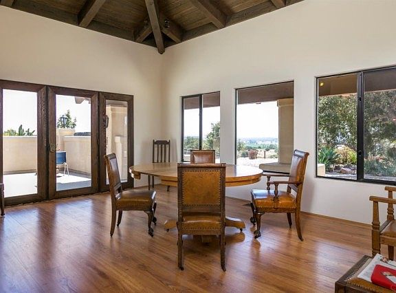 Wonderful Spanish hacienda located in the foothills on an oak-studded 10 acre parcel. This sanctuary offers serenity and privacy that is just a short trip to town and only 20 minutes from San Luis Obispo. Fall in love with the mainly single-story home with 4 over-sized bedrooms and 4 full baths.The master bedroom suite has a private veranda so that you can enjoy our great weather to its fullest. This is an ideal location where the beautiful and natural landscape will captivate you. The bedrooms are built around the center of the home with a large rotunda of beamed and vaulted ceilings. This amazing home includes a sitting room warmed by a circulating wood burning stove, a library with wall to ceiling bookcases, and an upstairs loft with balcony, bathroom and views of the pacific ocean, vineyards and valley! Kitchen features a built-in bbq & DeLongi Range & is open to the dining area where a wall of windows showcases the views. Aluminum garage seller says room to park several cars!