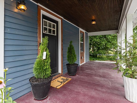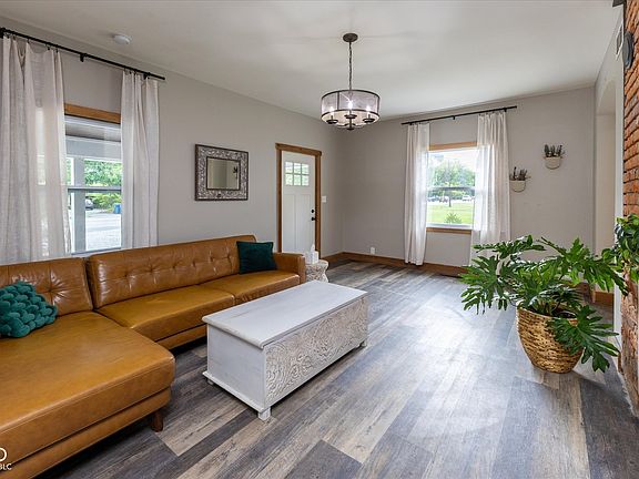 This meticulously updated vintage 116 year old home offers a rare combination of historic character and modern conveniences. Nestled on a spacious .62-acre lot with a fenced and wooded yard, this residence offers a tranquil retreat just moments from the bustling downtown Noblesville. The main level boasts luxury vinyl plank flooring throughout, providing a stylish and durable surface that complements the home's vintage charm. The living room is perfect for relaxation, showcasing an original brick accent and a built-in credenza. The fully equipped kitchen boasts a farmhouse sink, newer appliances, and updated flooring, combining functionality with style. The main level primary suite is a luxurious haven, featuring a vaulted ceiling, dual closets, and an opulent bathroom. Enjoy the outdoors with a covered front porch, a rear deck, a large patio, and a fire pit, ideal for entertaining or unwinding. The charming outbuilding includes an office and a potting shed/greenhouse, providing versatile spaces for work and hobbies. The fenced and wooded yard covers .62 acres, providing a serene and private outdoor space. Just a short distance from downtown Noblesville, you'll have easy access to a variety of shops, restaurants, and entertainment options. And don't forget to bring your chickens!