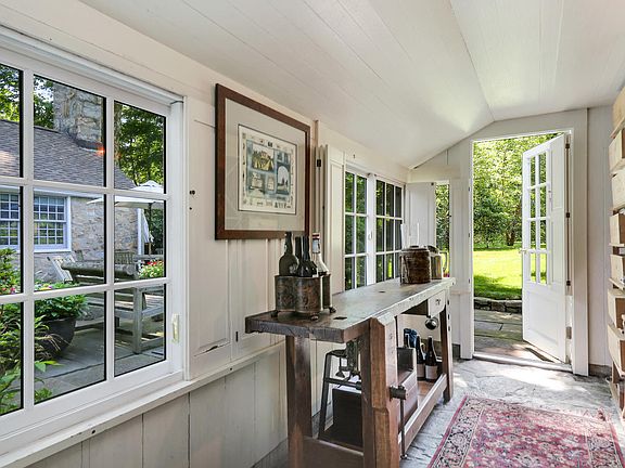 Freshly historic, spectacularly charming and formally informal. The core of this home dates to 1760 with preserved chestnut plank floors & a massive central stone fpl. CC beamed 1st floor Master w/fpl & ensuite bath...elegantly fresh, along with the CC family Room/kitchen, perfectly fitting the antique base of the home. Guest cottage consists of vaulted Great Rm with stone fpl & separate BR w/bath. All this is sited on gorgeous 2.5 level acres w/glorious perennial gardens terraces and lawns....Enchanting and romantic!