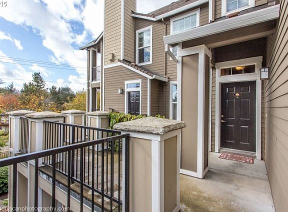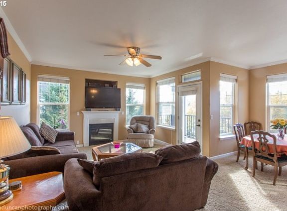 Open House 11/8 12-2 Opportunity awaits in this luxurious, gated community. Sunny SE corner end unit - great floor plan and designer touches! Stainless steel appliances, granite counters, tile floors, and crown molding. Living area is all on one level -no one above! Two balconies (one covered) to enjoy the view and fresh air. Upscale clubhouse, pool, hot-tub, gym, play area and sport court. Easy shopping access. Great West Linn Schools!