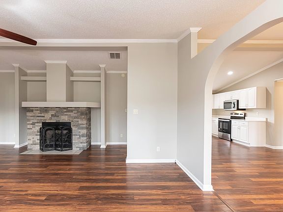 Simply Gorgeous and Loaded w/ Charm & Upgrades on 1.24 Acre Private/Wooded Lot that's FULLY Fenced w/ Pool! Decked Out w/ Custom Laminate Hardwood Flooring, NEW Carpet, FRESH Paint, NEW Fixtures, Newer Roof (Less than 1 Yr), Newer HVAC, Fireplace, Formal Dining Rm and More! OPEN Floor Plan w/ Great Ntl Light & Storage throughout. Spacious MBR Ste with WIC and French Doors, Upgraded BA w/ Jacuzzi Tub. Massive Kitchen w/ NEW Countertops and Huge Island w/ Bar Seating & Quick Access to Extended Deck w/ Pool Surround. Detached Storage Shed for all of your Tools & Accessories. A True Gem. Won't Last Long!