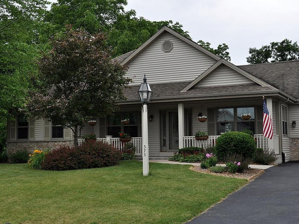 This sprawling 4000 sq.ft. ranch abutting the Scuppernong conservancy area with swimming and fishing access on Red Pine Lake is waiting for you. Split ranch design has 3 main floor bedrooms and 2 in the walk-out LL. Master Suite boasts twin walk-in closets, tiled bath and whirlpool tub. Open concept design features cathedral ceilinged Great Room with adjoining covered AZEK deck, large kitchen with breakfast bar, and formal dining room. LL family room with kitchenette, fireplace and walk out to stamped patio