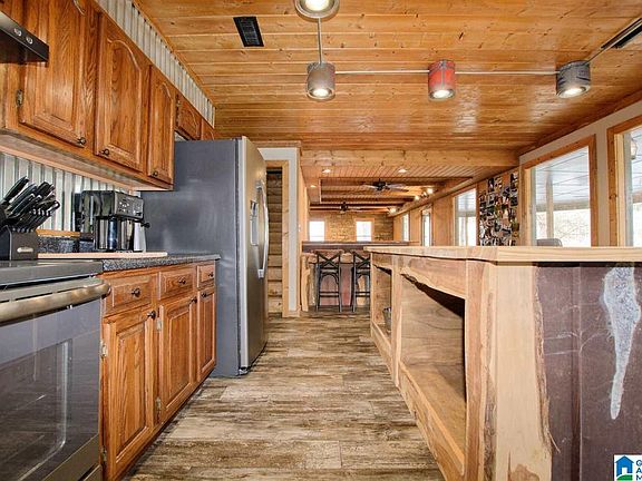 This is a rustic lake home that sits on the edge of the shoreline on Lake Wedowee that has been totally renovated and is being sold FURNISHED! This home offers 4 bedrooms with a spacious master bedroom and bathroom. A great family floor plan with relaxing and enjoying the lake life in mind. The main level has 3 additional bedrooms and 2 full bathrooms and a large family room. The terrace level has an open kitchen and family room with a large built in bar and a place for a wood burning stove if desired. The covered deck is ideal for entertaining and enjoying the outside. This deck offers awesome views of the lake and you are just a few steps to the gazebo, oversized covered dock with 2 boat slips and 2jet ski ports with 290 feet of seawall with year round water. Nice size garage for your lake toys and has a boat ramp for your convenience. You are located at the entrance of Wedowee Creek and seconds away from large open water and the Town of Wedowee. MORE PHOTOS COMING SOON!!
