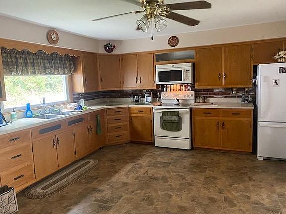 Well maintained 3 bedroom, 1.5 bath house. Features 2 bedrooms on main floor, full bathroom, large kitchen, living room and office. Second floor features 1 bedroom, half bath and unfinished space that could make a 4 bedroom. Basement features 2 garages, laundry area. 3rd garage is attached to the left of the house. Attached enclosed porch at the back of the house and a patio over the 3rd garage. 0.47 acre lot.