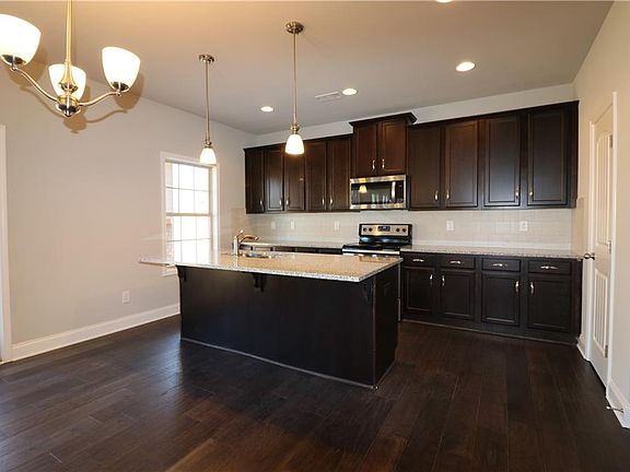 - Kitchen Features: Breakfast Bar, Cabinets Stain, View to Family Room, Kitchen Island, Pantry Walk-In, Breakfast Room, Solid Surface Counters