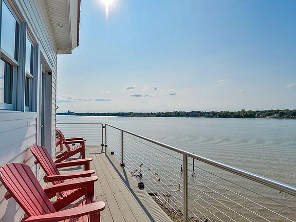This iconic riverfront property is situated on over an acre in Prospect on the Ohio River. The elevator takes you to the main living space that is open, fully-furnished, and updated with a coastal-inspired interior including the kitchen, great room, guest bedroom, half bath and owners suite. On the second floor are two queen beds and a full bathroom with laundry machines.