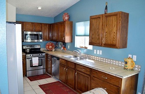 Superbly maintained gem that sits on a private homesite above the Calabacillas Arroyo, & yet so close to nearby Cottonwood, Rust Presbyterian & Lovelace Westside Hospitals, shopping, parks, and walking trails. You'll love the updated ceramic tile countertops/backsplash and the upgraded stainless steel appliances including gas range and trash compactor and refrigerator. Low-maintenance backyard outdoor living space has the environment to enjoy barbecuing and relaxing in our wonderful New Mexican climate with tall walls for seclusion you want. Spacious great room can handle crowds when you need it, & you'll appreciate the large Master Suite that's separate from the other two. Extra storage is available via the pull-down stairs that accesses the attic area. New water heater, too. Come see!