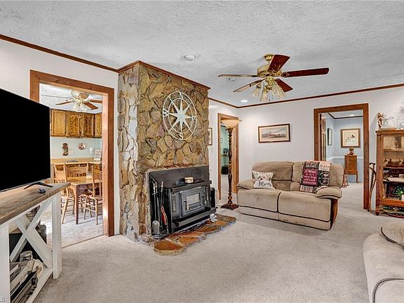 One level home on 4.41 Acres! This 3br/2ba home sits off the road for excellent privacy. Front porch opens into living room with stone fireplace. Spacious kitchen has excellent counter space and eat-in area. Huge primary suite has multiple closets and a very large bathroom with shower and oversized jacuzzi tub. Two additional bedrooms, full bath and laundry room complete the home. Oversized deck, screened porch and patio area are wonderful spaces to enjoy the peaceful setting. Building provides opportunity for workshop or storage. See agent only remarks.
