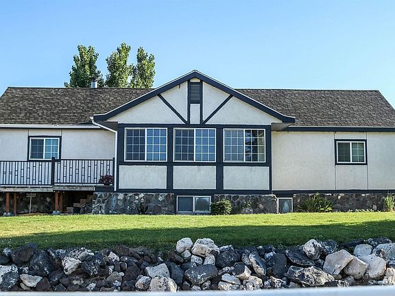 PERFECT HORSE AND KID SET UP. HUGE FAMILY ROOM/BONUS/REC ROOM PLUS 2 BEDROOMS AND OFFICE AND FOOD STORAGE ROOM IN BASEMENT WITH PELLET STOVE. VIEWS ARE AWESOME MTNS TO THE SOUTH AND NORTH. 6 STALL HORSE BAR AND TAC AND HAY COVER ALSO A ROUND CORRAL. PASTURE AND RAISE YOUR OWN HAY TO FEED THE ANIMALS. SMALL BARN AND EQUIPMENT SHED. POND IN BACK OF PROPERTY FOR THE ANIMALS AND WILD LIFE. WATER PIPED TO BARNS PLUS A CHICKEN COOP.