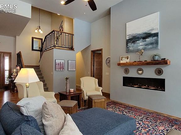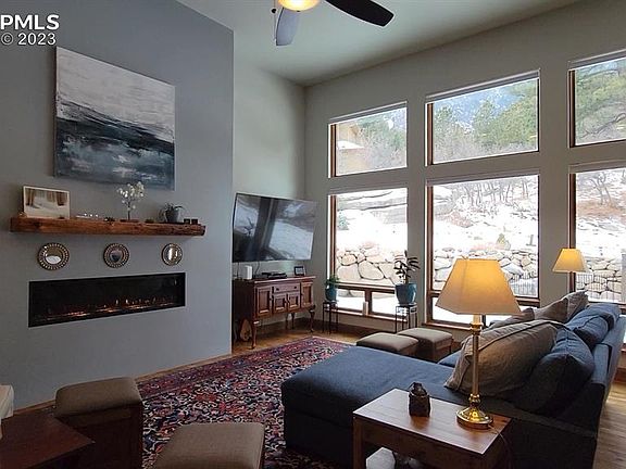 Fireworks VIEW from the Romeo & Juliet Balcony perched above the clouds*A Well packaged 2,993 Square Foot Custom Home on over a .26 acre of Colorado Mountain Land*Builder: High Country Homes specializes in Luxury Areas: The Spires At Broadmoor, Bella Collina, Kissing Camels, Broadmoor Park and more, instilling integrity and a reputation for quality craftsmanship*From the first step through the grand Knotty Alder Door Entrance, Attention to detail at every inch captures the astute buyer: 8 ft rich toned Knotty Alder main level doors & expanded matching trim & flooring, Aluminum Clad Pella Windows w/ interior wood casements*Custom Study w/ wall-to-wall built-In Books Cases hide-away drawers and a full refreshment bar w/wine bottle rack*Open Kitchen-Dining-Living Room Concept is exactly what was needed to take this floorplan to the max: Living Rm boast floor to Ceiling windows capturing Cheyenne Mountain, Gas Fireplace Model 6015 HO is the Deluxe Model 180 CFM - Convection Fan w/LED Accent Stones & blower*Kitchen w/Wolf Gas stove w/griddle, Island offers: Custom Sink / Meon fixtures and a fresh newer butcher block top*Kitchen Aid double ovens, Refrigerator*Walk-Out sliders w/Lutron Serena Automated Filtering Shades*Private Rear Covered Patio (Gas-Plumbed for Grill) includes additional scroll privacy blinds & (Infratech) Comfort electric heater* Master Retreat: Main Level w/private covered patio, His/her Closets, private bath with large glass shrouded shower with bench, standalone tub with brushed brass faucet floor mounted, radiant heated floor By: (Suntouch):Upper Level:3beds or 2 & Office you choose nicely appointed*Rear Entertaining area covered heated patio*flat grassy fenced area w/amazing shrubs-flowers, boulders and Cheyenne Mtn VIEWS all bringing this custom beauty to life*Newer Construction is a rare find for this area so come be pleasantly pleased with YOUR NEW HOME*