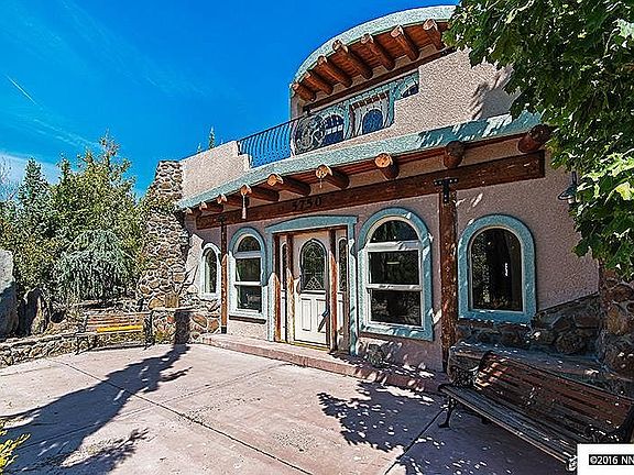 Hobbit Ranch sits on Thomas Creek, a real oasis hidden away near the base of Mount Rose. It's accessed from prestigious Timberline Drive off a short gravel drive. This is a high tech, energy efficient, home made in the form of 3 monolithic domes (not to be confused with geodesic domes). The Insulation R value is 50. Situated on 2.5 acres including Thomas Creek. Monolithic concrete construction was designed to make this home highly hurricane, earthquake, fire, storm, and pest proof. The acoustics in the home are outstanding, making it a joy when listening to music, entertaining, or watching TV due to sound bounce technology (interior parabola shape walls). The entire home is heated with a single water heater, including the garage, yet energy costs are modest due to high insulation. Multiple custom stone paths lead you down to the private aspen grove and Thomas Creek. The home has a 500 sqft patio with a gazebo and hot tub. There is a massive 800+sq ft redwood deck overlooking the South Reno valley. Upstairs in the loft of the center dome 2 covered balconies face North and South to allow stunning views of Mt Rose and the city lights of Reno. Just a short 15 minutes drive puts you on the beach in lake Tahoe for the summer or on the slopes of Mt Rose Ski resort in the winter. Hundreds of trees dot the property, including unique weeping cedars, fruit trees, aspen, and giant sequoia. Two branches of Thomas creek connect on the property, forming a private Island in the aspen grove below the house. No expense was spared, stamped concrete floors with radiant heating throughout the main living area and bedrooms. 2 of the bathrooms have jacuzi bathtubs and the house features custom high end doors & finishes. This home has 5 bathrooms for 3 bedrooms, just one of the reasons it's an ideal entertaining space. Property cost over a million dollars to build in 2000. To access the property take Mt Rose Highway turn Rt on N. Timberline drive until pavement ends take dirt rd 1/4 mile then turn Rt on Rock Farm (AKA Bellhaven Rd). There is no road sign. Drive 1/4 mile take 2nd left (No Road sign) House is at the end of road.