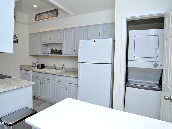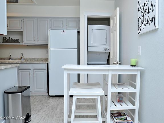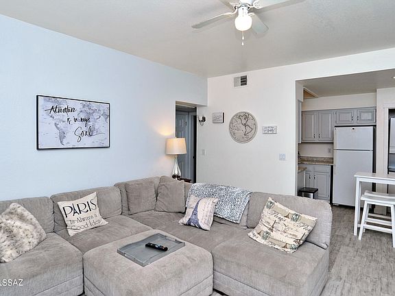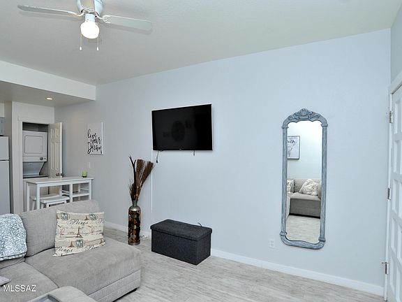 Private Ground Level Corner Unit in one of the hottest locations in Tucson and priced to sell. Freshly renovated and fully furnished, this turnkey will have you at the door. Just a short drive to Sabino Cyn and a doorstep stroll to hiking,biking,coveted shopping and fine dining. Current use as a VRBO with approx.15% conservative ROI (up to $38K) income. Upgraded tile throughout, granite ctp in bathroom, renovated shower and bath. Newer dishwasher. Nice walk-in closet in bedroom and Central A/C. Resort Style community pool & spa. Community is now mid renovation scheduled for completion July 2022. Winter bookings can be transferred to new owners. All Furnishings, except wall mirror in bedroom, dishes, linens, washer & dryer and refrigerator included in full price. Seller financing available!